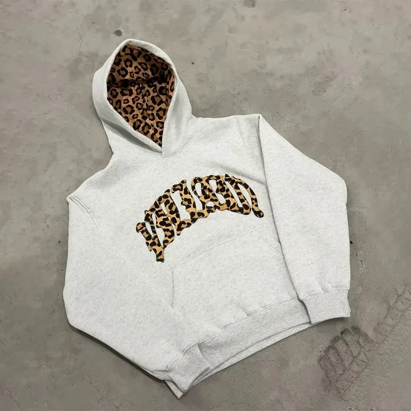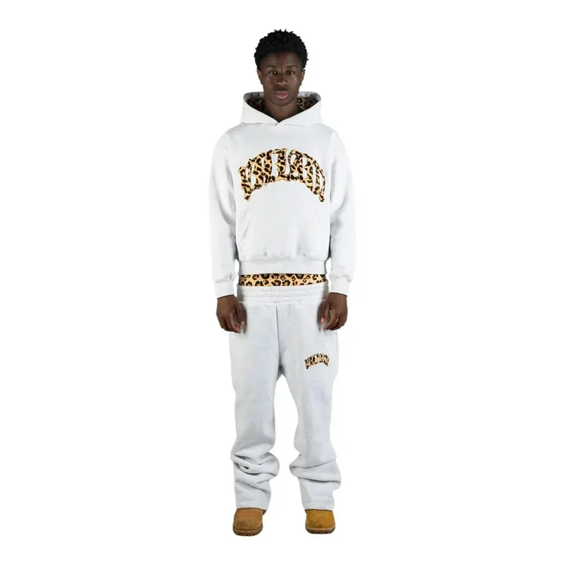3 Pcs Sportswear Set Y2k Men Women Retro Superior Leopard Patchwork Set American Streetwear Unisex Boxy Casual Couples Apparel
